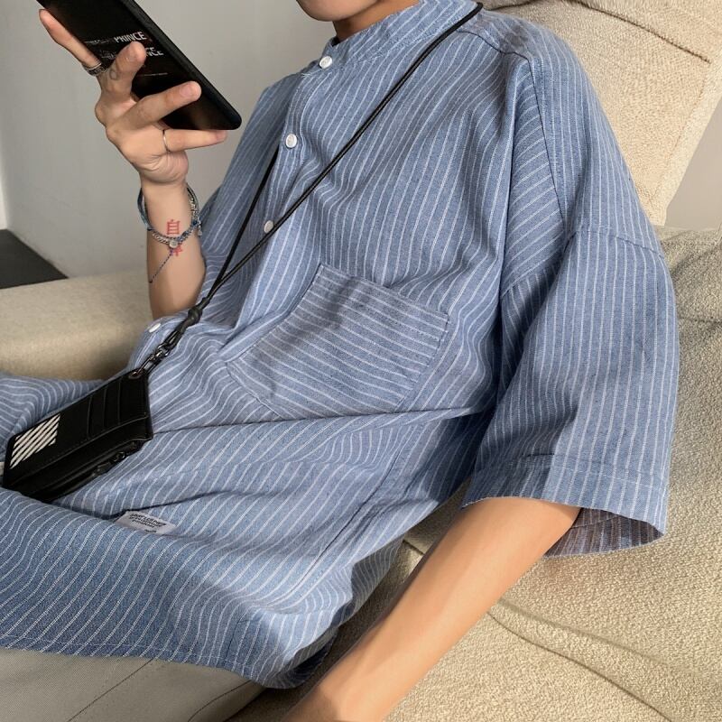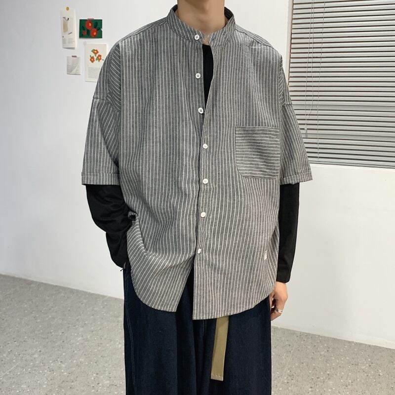 新品 KOREAスリーブシャツブラウス ジャケット カジュアル ストライプ 原宿⦿韓国 韓流 オルチャン K-pop アイドル ジャケット スーツ Tシャツ カーディガン ニット フーディー トレーナー シャツ タンクトップ アクセサリー ペンダント ネックレス ブレスレット リング ピアス バッグ 8A4637612