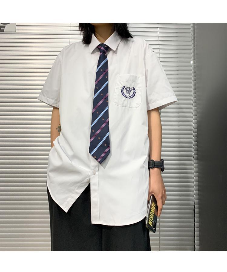 新品 ベーシック白シャツブラウス半袖スリーブ♡ ショート ホワイト レッド 刺繍 ⦿韓国 韓流 オルチャン K-pop アイドル ジャケット スーツ Tシャツ カーディガン ニット フーディー トレーナー シャツ タンクトップ アクセサリー ペンダント ネックレス ブレスレット リング ピアス バッグ 8A8099494