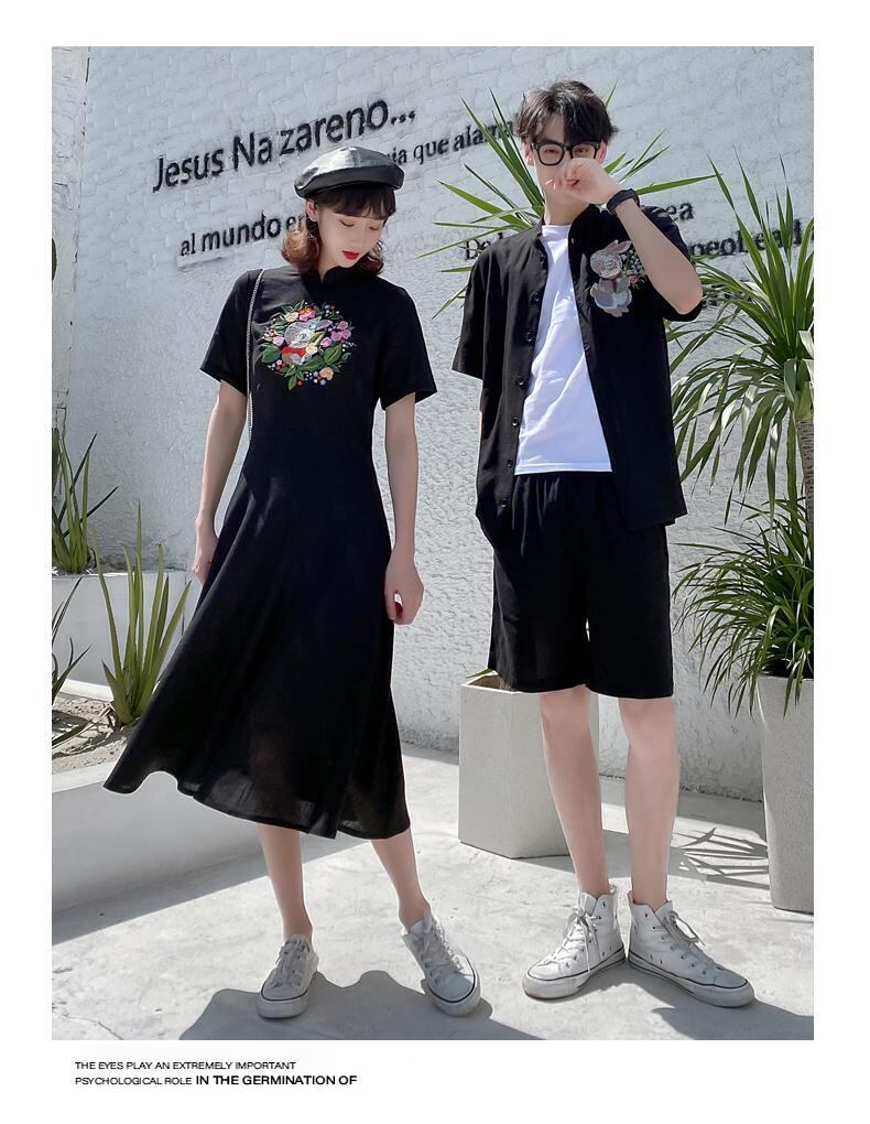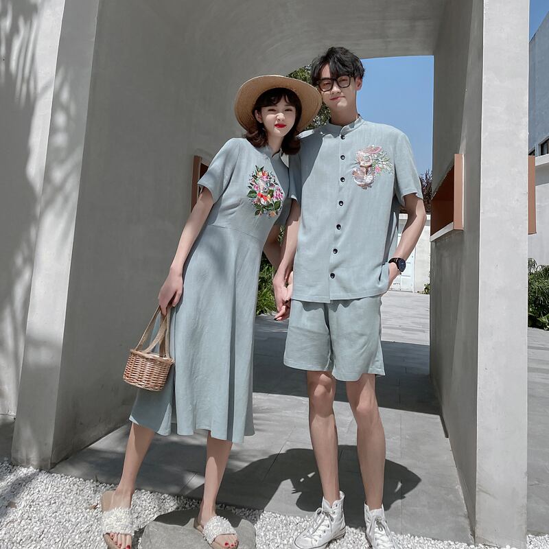 色:黒-女性のドレス,黒男性セット,磁器シアン-ドレス,磁器シアン-男性セット,810レディーススーツ=トップ+オーバーオール
