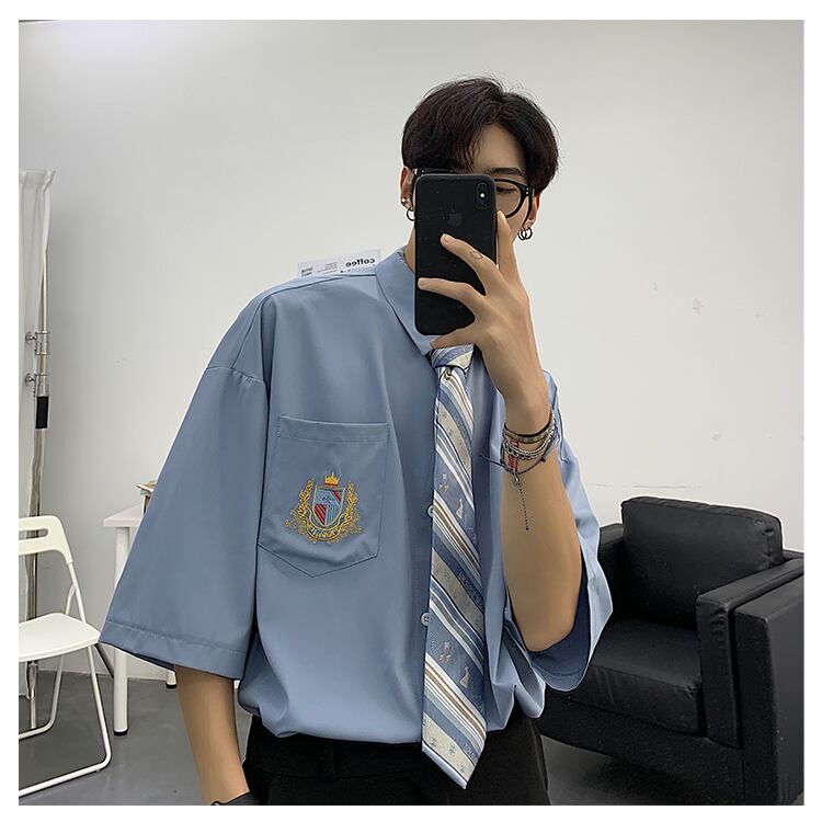 ☆ シャツ 半袖スリーブカジュアルサマールーズ刺繍 ショート ハーフスリーブ 夏物 ☆春夏秋冬 韓国 韓流 オルチャン K-pop アイドル コリアン コリアンスター ファッション アクセサリー ペンダント ネックレス ブレスレット リング ピアス バッグ ドラマ 韓国服 Kpop帽子 Kpop雑誌 BTS NiziU TWICE BLACKPINK コリアン コリア 明洞 8A6542949465