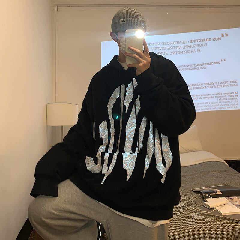 ☆ ブラックフードセーター スプリングルーズプリント柄トップス ストリート 春物 ヨーロピアン ☆春夏秋冬 韓国 韓流 オルチャン K-pop アイドル コリアン コリアンスター ファッション アクセサリー ペンダント ネックレス ブレスレット リング ピアス バッグ ドラマ 韓国服 Kpop帽子 Kpop雑誌 BTS NiziU TWICE BLACKPINK コリアン コリア 明洞 8A50984945527