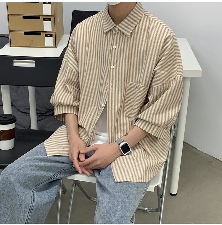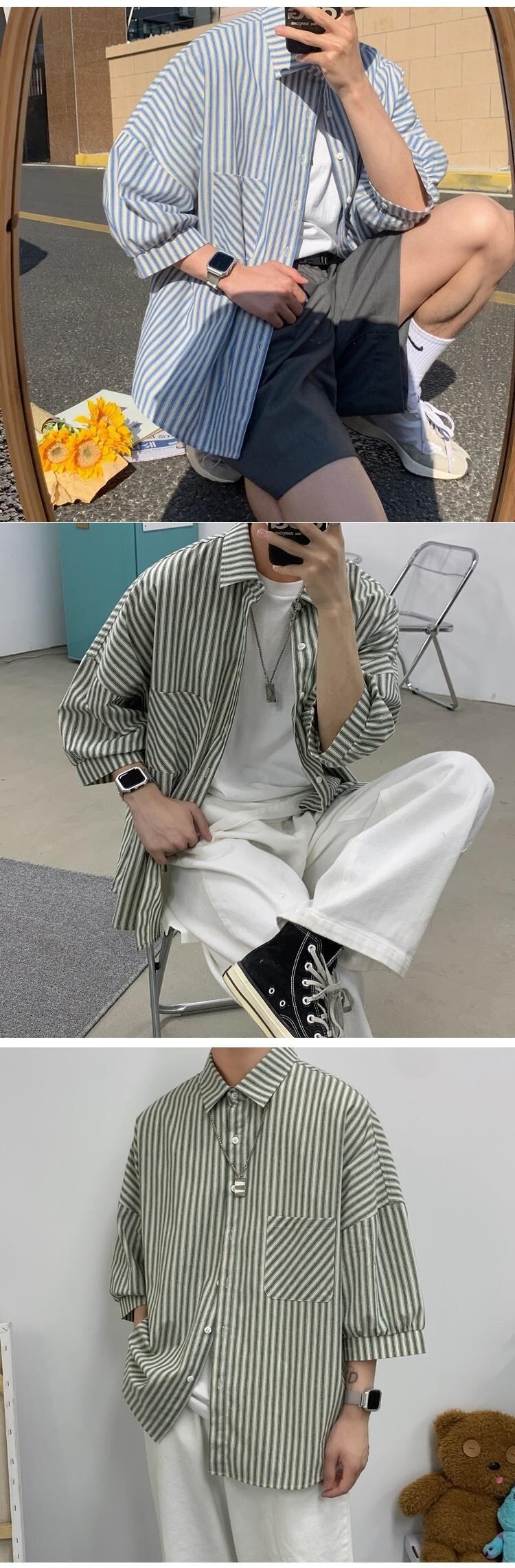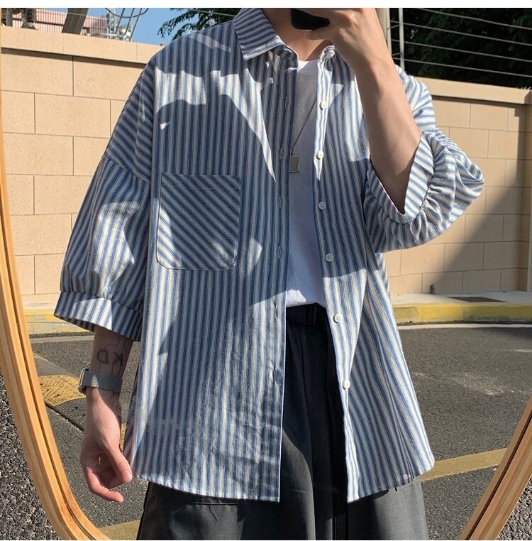 ☆ サマーストライプシャツ ルーズカジュアルジャケット 夏物 ☆春夏秋冬 韓国 韓流 オルチャン K-pop アイドル コリアン コリアンスター ファッション アクセサリー ペンダント ネックレス ブレスレット リング ピアス バッグ ドラマ 韓国服 Kpop帽子 Kpop雑誌 BTS NiziU TWICE BLACKPINK コリアン コリア 明洞 8A6435135601
