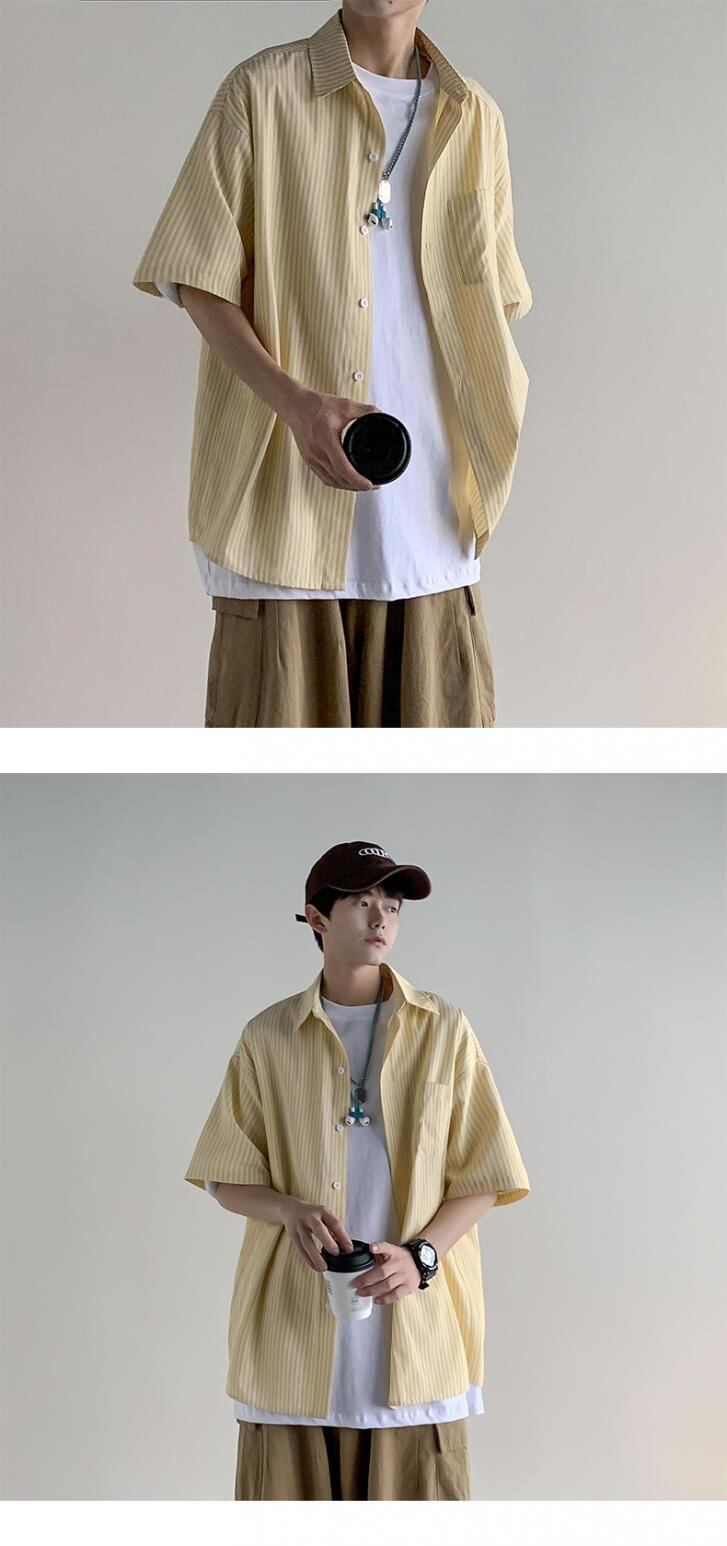 ☆ サマーストライプシャツ ルーズカジュアルジャケット 夏物 ☆春夏秋冬 韓国 韓流 オルチャン K-pop アイドル コリアン コリアンスター ファッション アクセサリー ペンダント ネックレス ブレスレット リング ピアス バッグ ドラマ 韓国服 Kpop帽子 Kpop雑誌 BTS NiziU TWICE BLACKPINK コリアン コリア 明洞 8A55188416735