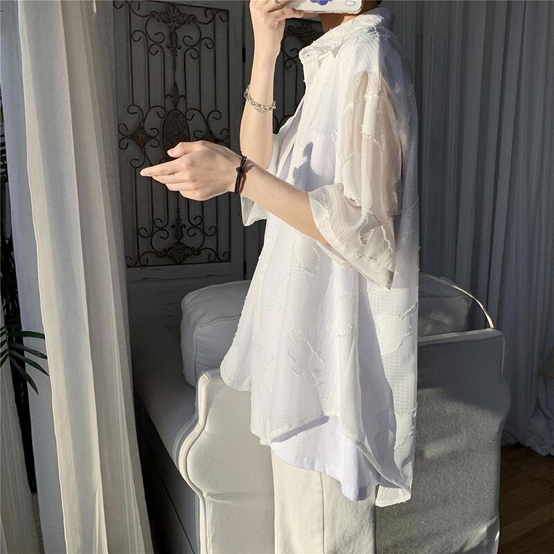 ☆ サマーシャツ スタイルプリントシフォン薄手 夏物 ☆春夏秋冬 韓国 韓流 オルチャン K-pop アイドル コリアン コリアンスター ファッション アクセサリー ペンダント ネックレス ブレスレット リング ピアス バッグ ドラマ 韓国服 Kpop帽子 Kpop雑誌 BTS NiziU TWICE BLACKPINK コリアン コリア 明洞 8A7689808222