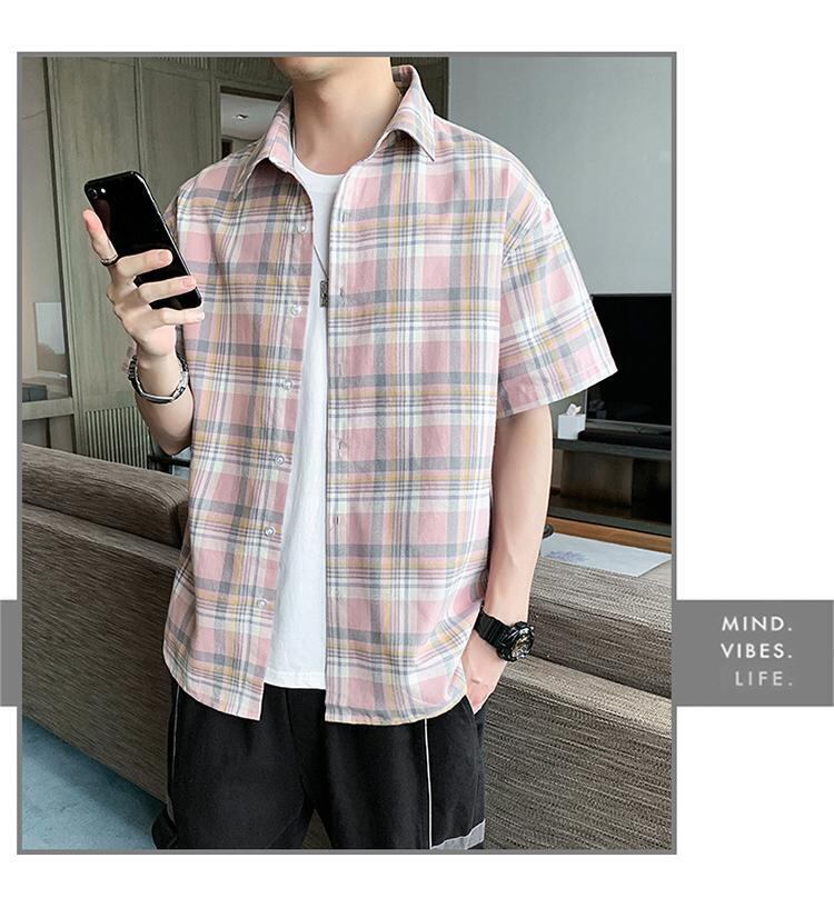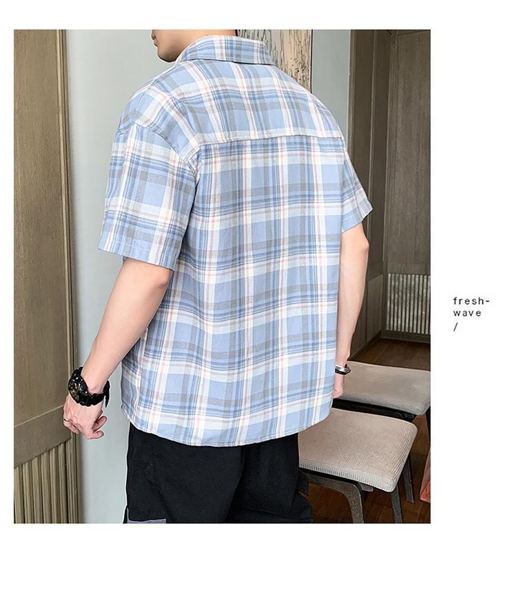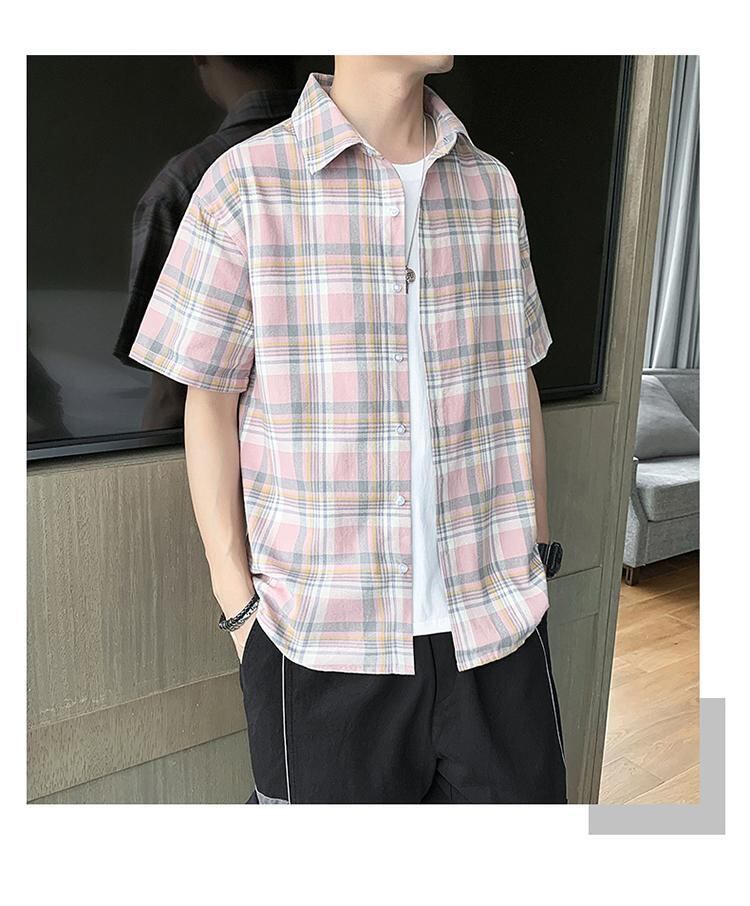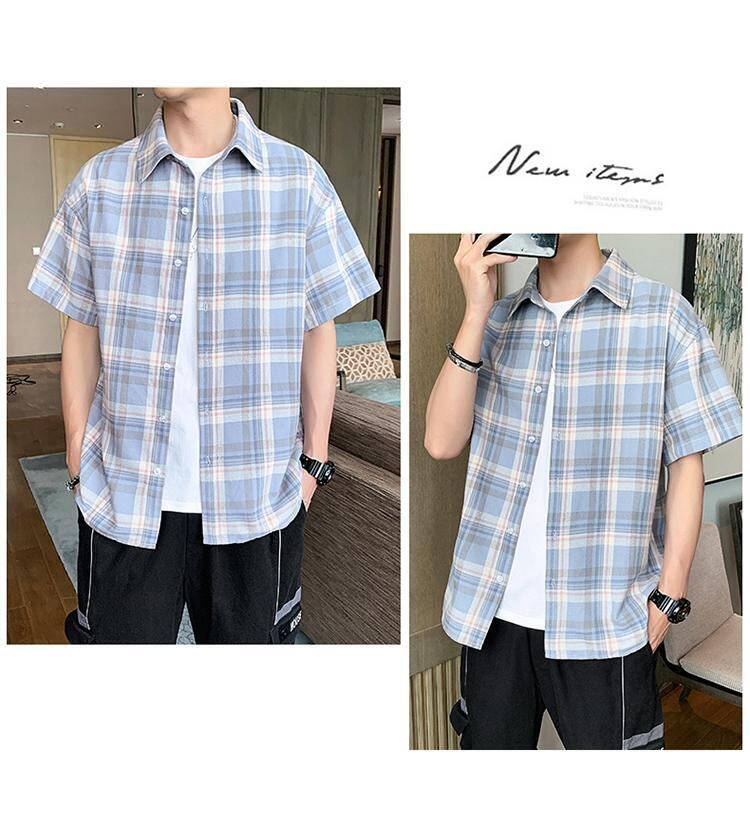 ☆ サマーシャツ ルーズ格子柄スタイル コットン 大きめサイズ 夏物 ☆春夏秋冬 韓国 韓流 オルチャン K-pop アイドル コリアン コリアンスター ファッション アクセサリー ペンダント ネックレス ブレスレット リング ピアス バッグ ドラマ 韓国服 Kpop帽子 Kpop雑誌 BTS NiziU TWICE BLACKPINK コリアン コリア 明洞 8A34048842207