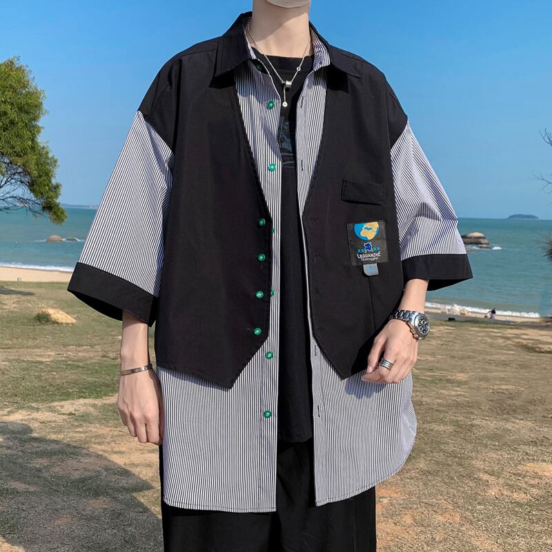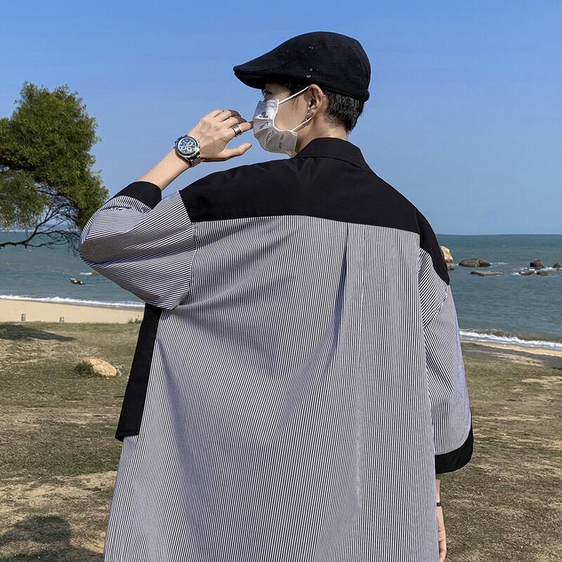 ☆ ストライプシャツ ルーズサマースタイル 大きめサイズ 夏物 ☆春夏秋冬 韓国 韓流 オルチャン K-pop アイドル コリアン コリアンスター ファッション アクセサリー ペンダント ネックレス ブレスレット リング ピアス バッグ ドラマ 韓国服 Kpop帽子 Kpop雑誌 BTS NiziU TWICE BLACKPINK コリアン コリア 明洞 8A7905444038