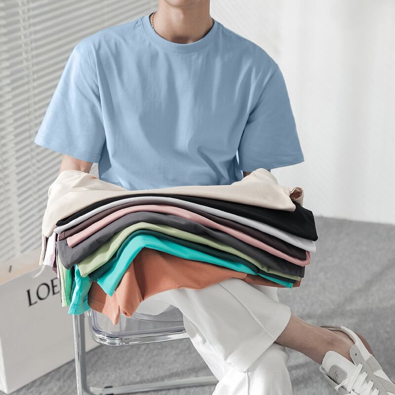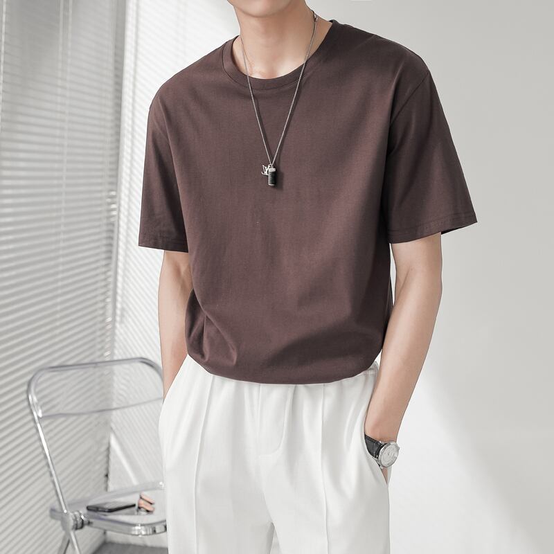 ☆ サマールーズスタイルラウンドネックTシャツ カジュアルソリッド カラー コットン 夏物 Oネック ソリッドカラー ☆春夏秋冬 韓国 韓流 オルチャン K-pop アイドル コリアン コリアンスター ファッション アクセサリー ペンダント ネックレス ブレスレット リング ピアス バッグ ドラマ 韓国服 Kpop帽子 Kpop雑誌 BTS NiziU TWICE BLACKPINK コリアン コリア 明洞 8A18647852097