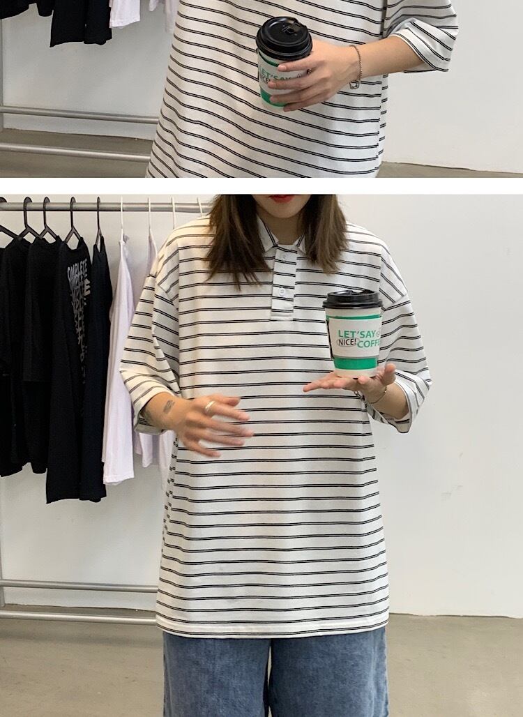☆ サマーストライプシャツ ルーズTシャツ 夏物 ☆春夏秋冬 韓国 韓流 オルチャン K-pop アイドル コリアン コリアンスター ファッション アクセサリー ペンダント ネックレス ブレスレット リング ピアス バッグ ドラマ 韓国服 Kpop帽子 Kpop雑誌 BTS NiziU TWICE BLACKPINK コリアン コリア 明洞 8A26679746061