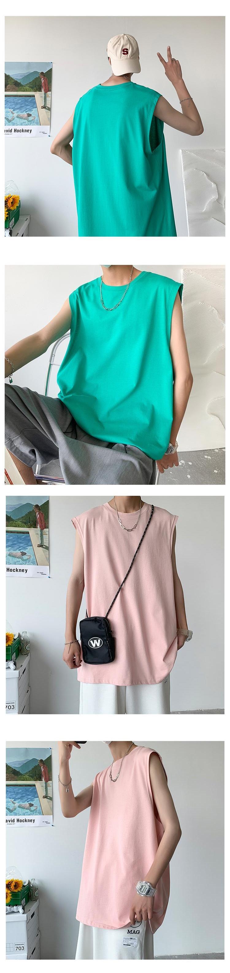 ☆ ノースリーブTシャツ シャツ サマーソリッド カラールーズラウンドネックカジュアル コットン 夏物 Oネック ソリッドカラー ☆春夏秋冬 韓国 韓流 オルチャン K-pop アイドル コリアン コリアンスター ファッション アクセサリー ペンダント ネックレス ブレスレット リング ピアス バッグ ドラマ 韓国服 Kpop帽子 Kpop雑誌 BTS NiziU TWICE BLACKPINK コリアン コリア 明洞 8A87784716088