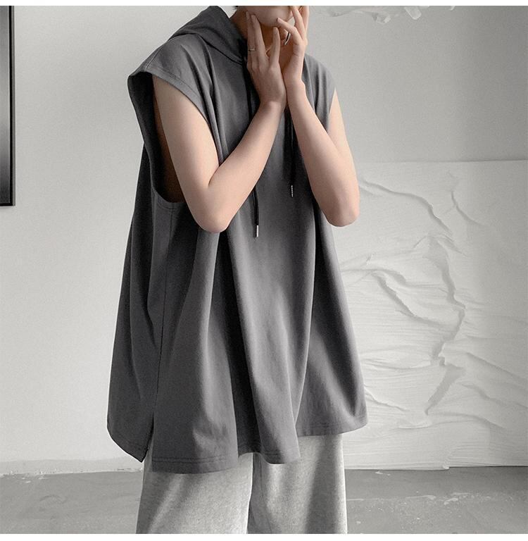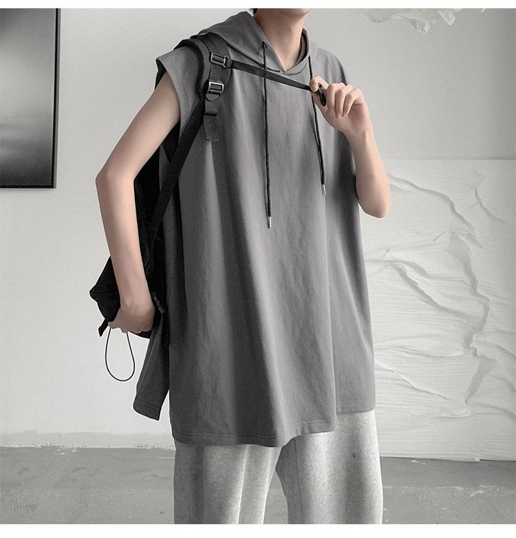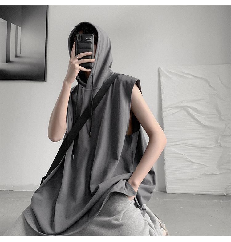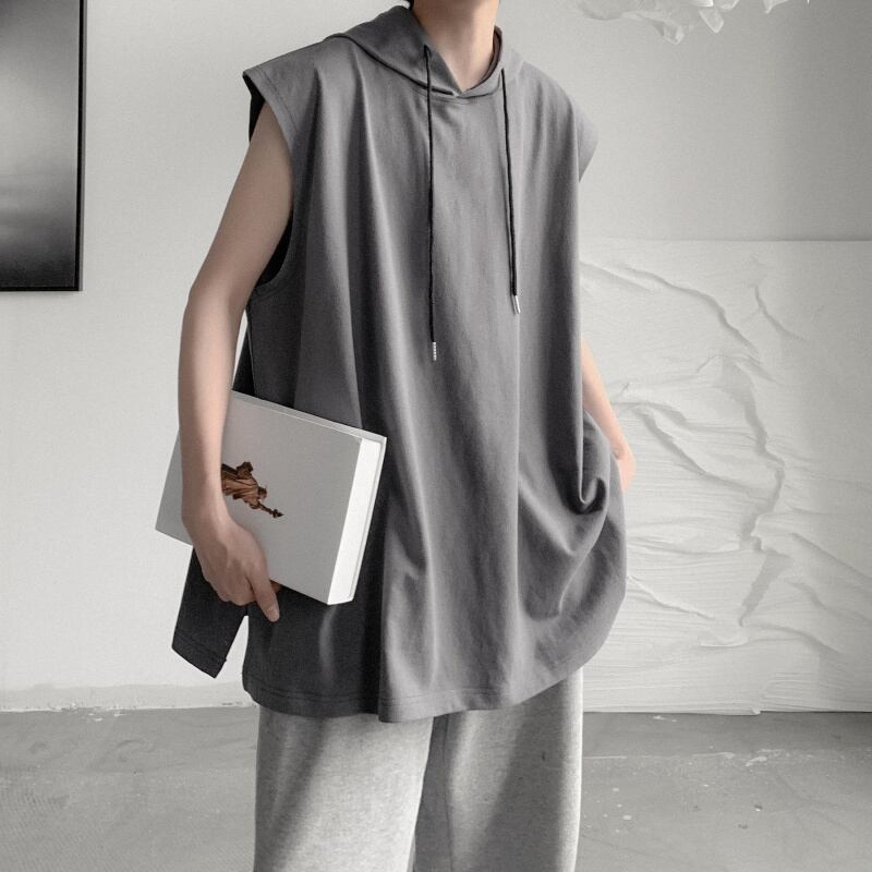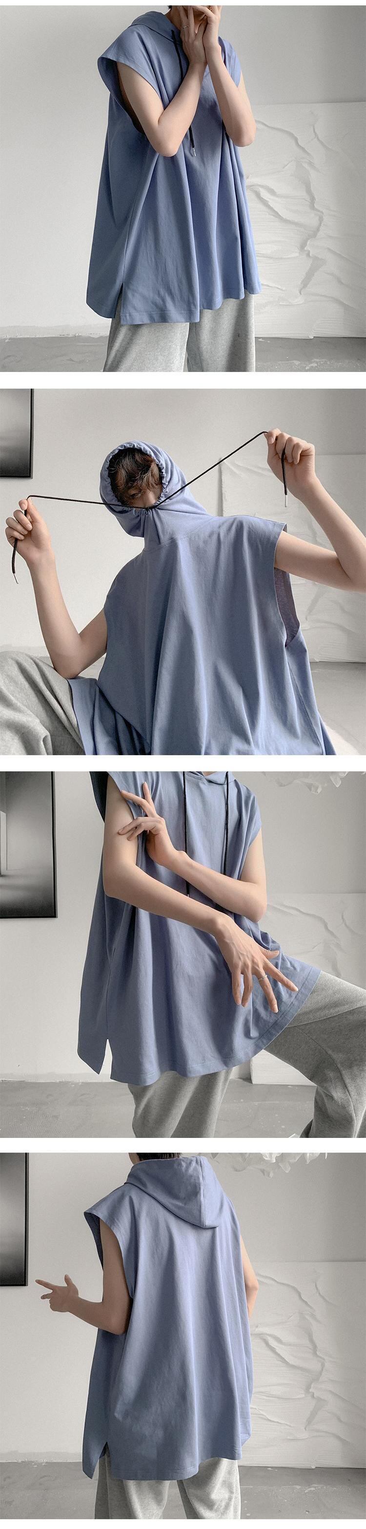 ☆ ノースリーブTシャツ サマーフードルーズグレー 夏物 ☆春夏秋冬 韓国 韓流 オルチャン K-pop アイドル コリアン コリアンスター ファッション アクセサリー ペンダント ネックレス ブレスレット リング ピアス バッグ ドラマ 韓国服 Kpop帽子 Kpop雑誌 BTS NiziU TWICE BLACKPINK コリアン コリア 明洞 8A49682227819