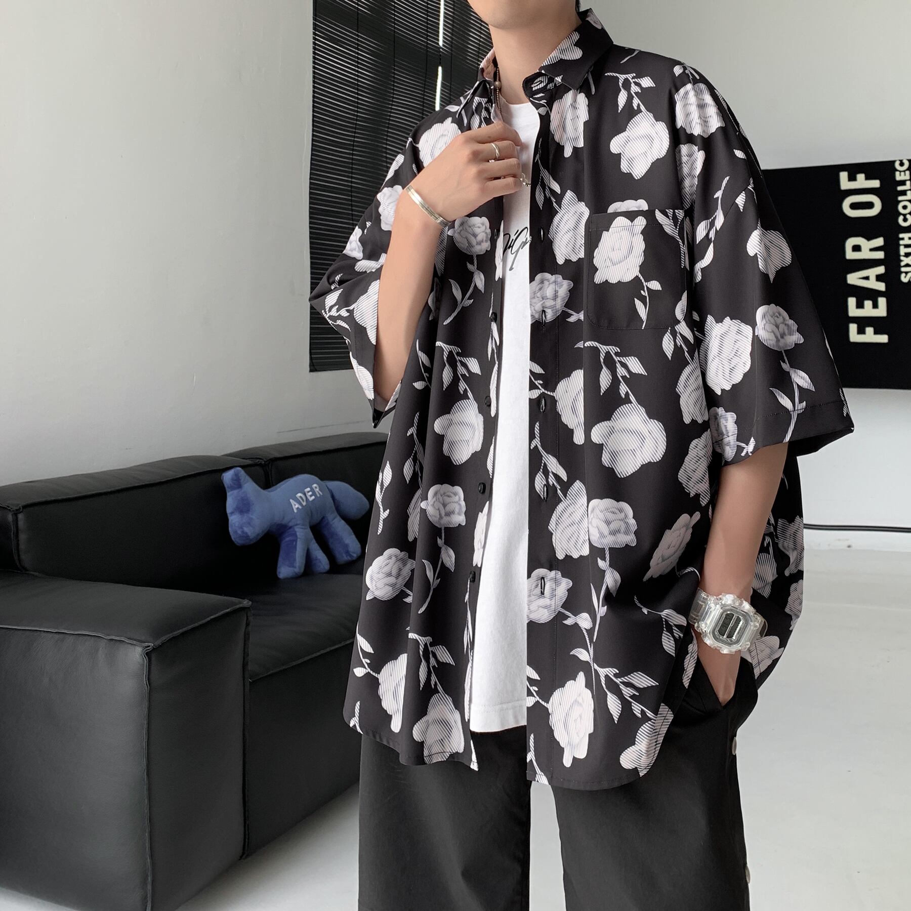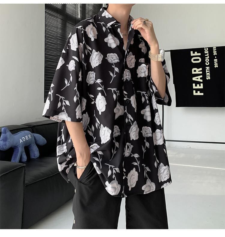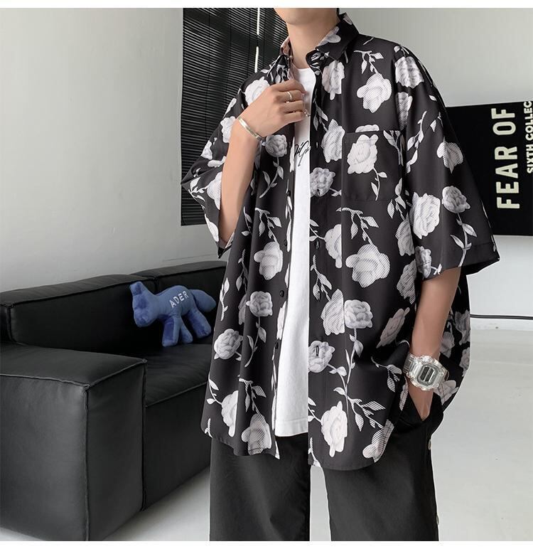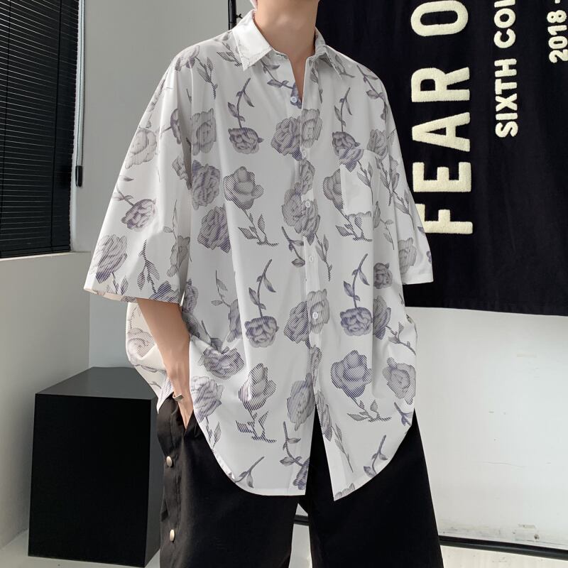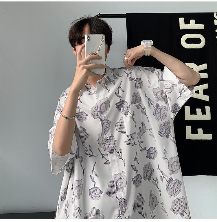 ☆ プリントシャツ ルーズカジュアル シルク ☆春夏秋冬 韓国 韓流 オルチャン K-pop アイドル コリアン コリアンスター ファッション アクセサリー ペンダント ネックレス ブレスレット リング ピアス バッグ ドラマ 韓国服 Kpop帽子 Kpop雑誌 BTS NiziU TWICE BLACKPINK コリアン コリア 明洞 8A20855141915