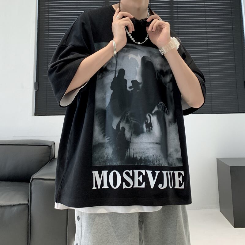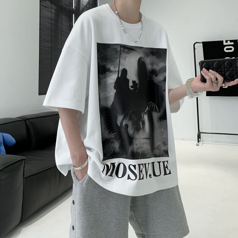☆ ダークプリントTシャツ サマールーズカジュアルラウンドネック ストリート 夏物 Oネック ヨーロピアン ☆春夏秋冬 韓国 韓流 オルチャン K-pop アイドル コリアン コリアンスター ファッション アクセサリー ペンダント ネックレス ブレスレット リング ピアス バッグ ドラマ 韓国服 Kpop帽子 Kpop雑誌 BTS NiziU TWICE BLACKPINK コリアン コリア 明洞 8A49739265343