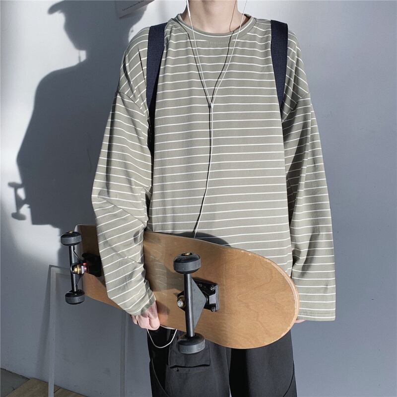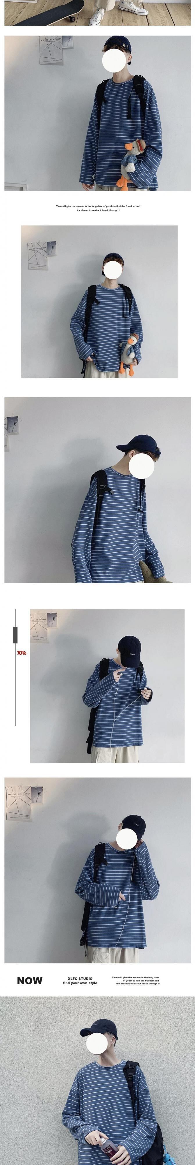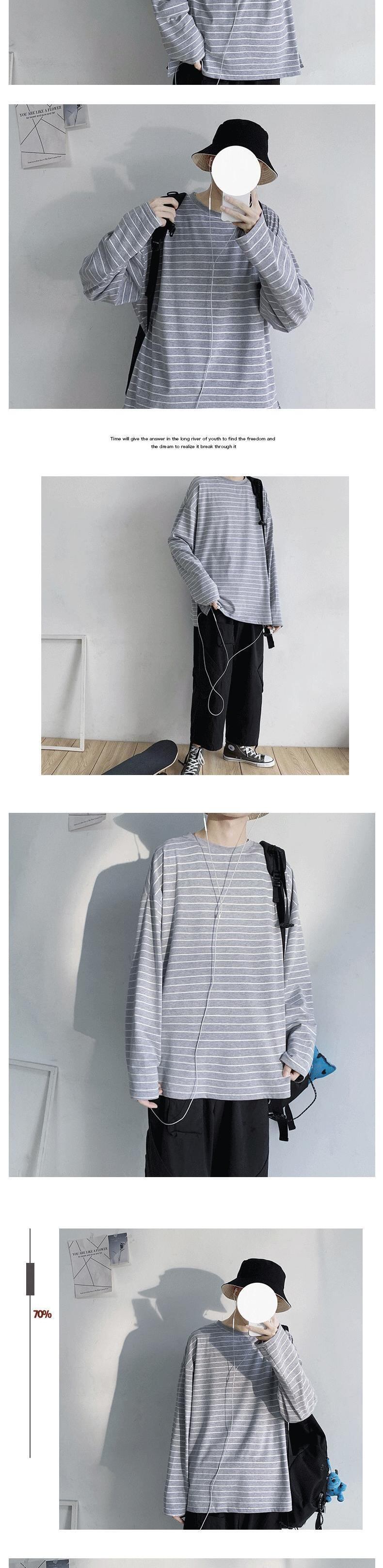 ☆ ストライプTシャツ シャツ ブラックホワイトラウンドネックスタイルルーズスプリングオータム ロング 春物 秋物 Oネック ☆春夏秋冬 韓国 韓流 オルチャン K-pop アイドル コリアン コリアンスター ファッション アクセサリー ペンダント ネックレス ブレスレット リング ピアス バッグ ドラマ 韓国服 Kpop帽子 Kpop雑誌 BTS NiziU TWICE BLACKPINK コリアン コリア 明洞 8A75389188331