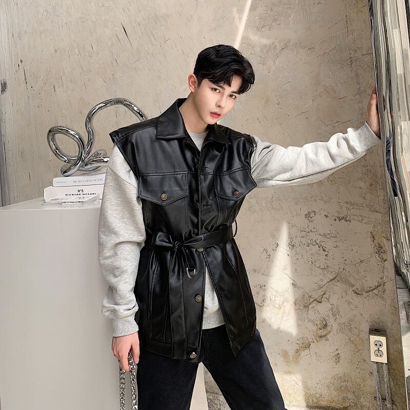 ☆ スプリングオータムノースリーブレザージャケット 大きめサイズ 春物 秋物 ☆春夏秋冬 韓国 韓流 オルチャン K-pop アイドル コリアン コリアンスター ファッション アクセサリー ペンダント ネックレス ブレスレット リング ピアス バッグ ドラマ 韓国服 Kpop帽子 Kpop雑誌 BTS NiziU TWICE BLACKPINK コリアン コリア 明洞 8A90757659399