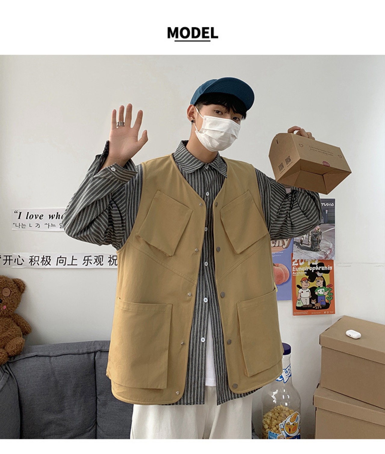 ☆ スタイルルーズジャケット スタンダードノースリーブ レトロ ポケット多め マルチポケット ☆春夏秋冬 韓国 韓流 オルチャン K-pop アイドル コリアン コリアンスター ファッション アクセサリー ペンダント ネックレス ブレスレット リング ピアス バッグ ドラマ 韓国服 Kpop帽子 Kpop雑誌 BTS NiziU TWICE BLACKPINK コリアン コリア 明洞 8A4674093468