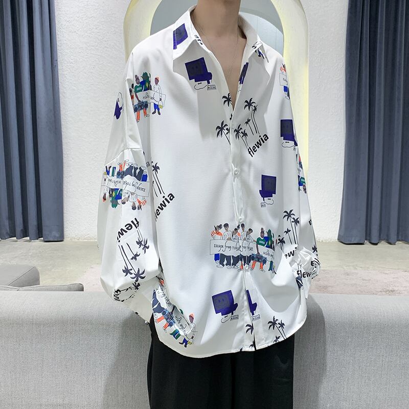 ☆ スタンダード自然派プリントシャツ ルーズジャケット オータムカジュアル ロング レトロ 秋物 ☆春夏秋冬 韓国 韓流 オルチャン K-pop アイドル コリアン コリアンスター ファッション アクセサリー ペンダント ネックレス ブレスレット リング ピアス バッグ ドラマ 韓国服 Kpop帽子 Kpop雑誌 BTS NiziU TWICE BLACKPINK コリアン コリア 明洞 8A42252075152