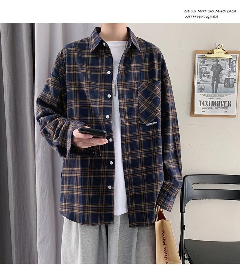 ☆ スプリングオータムスタンダード格子柄シャツ スタイルカジュアルジャケット ロング レトロ 大きめサイズ 春物 秋物 ☆春夏秋冬 韓国 韓流 オルチャン K-pop アイドル コリアン コリアンスター ファッション アクセサリー ペンダント ネックレス ブレスレット リング ピアス バッグ ドラマ 韓国服 Kpop帽子 Kpop雑誌 BTS NiziU TWICE BLACKPINK コリアン コリア 明洞 8A20026125146